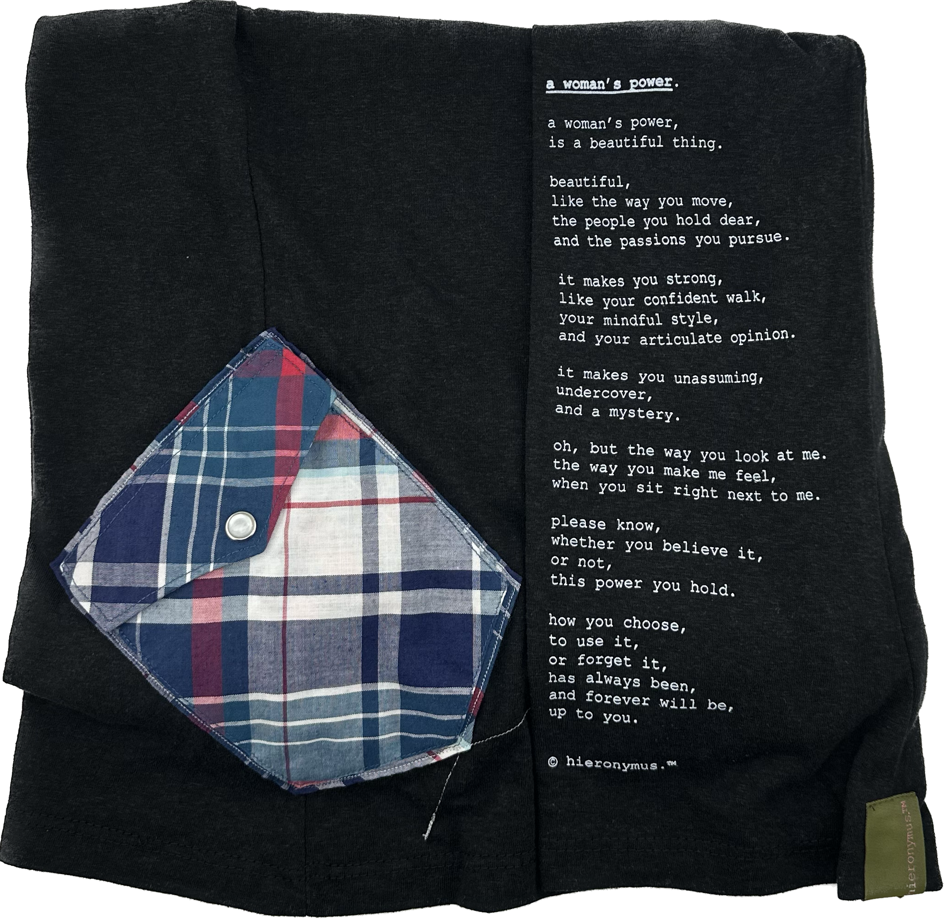 each "a woman's power." piece comes with its own unique upcycled and numbered pearl snap pocket (this is pocket ps36R). there is only one of each color pocket, so have fun shopping for the pocket you love most!
